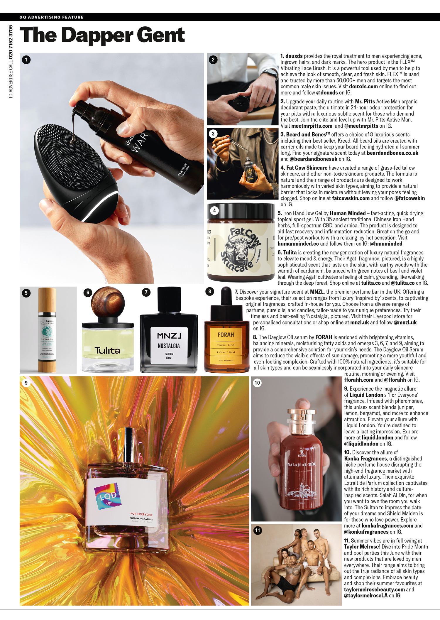 TAYLOR MELROSE BEAUTY FEATURED IN THE DAPPER GENT SECTION. HIGHLIGHTING PRODUCTS AND THE FOUNDER.